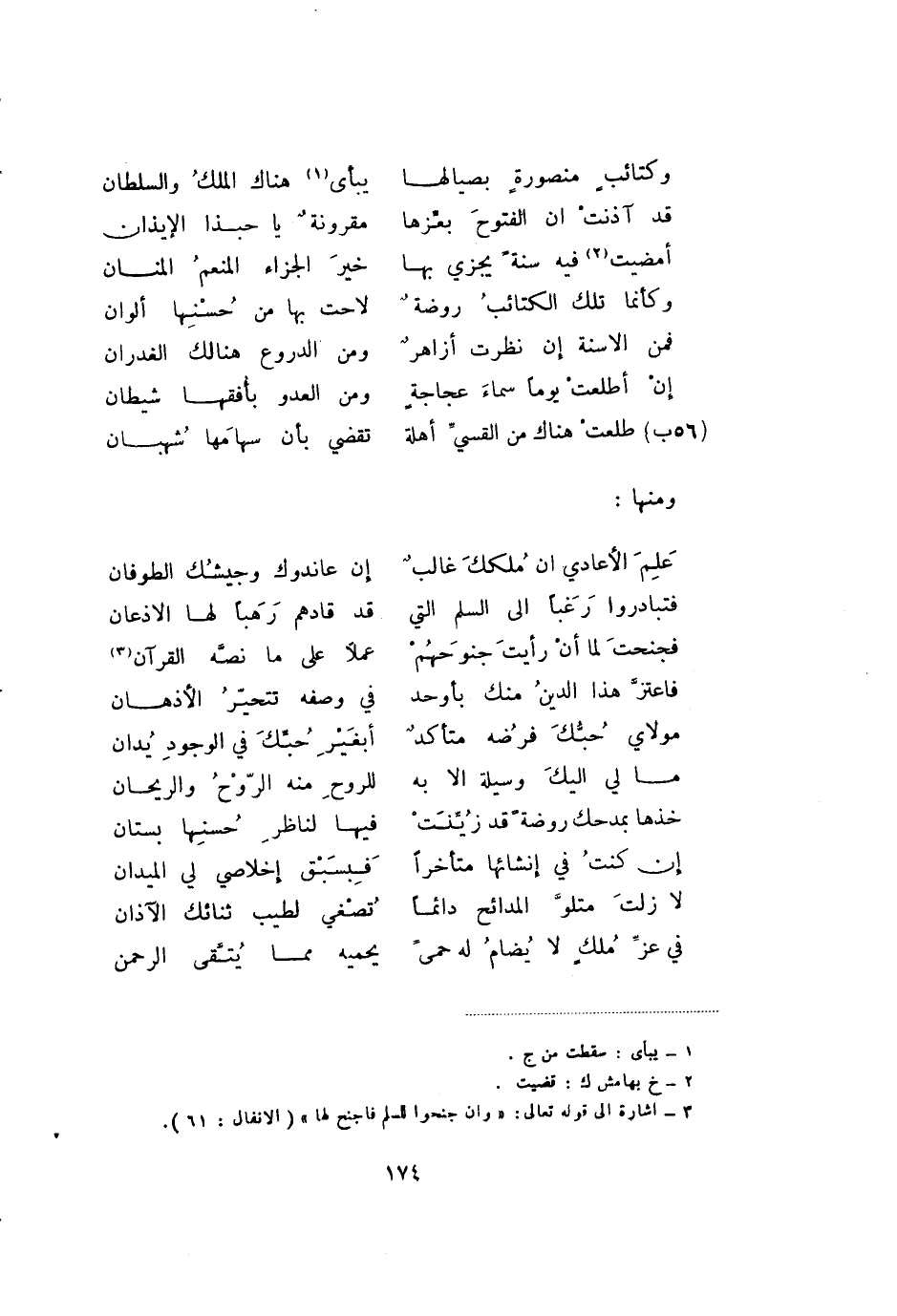 (3) إشارة إلى قوله تعالى: " وان جنحوا إلى السلم فاجنح لها " (الأنفال:61) .