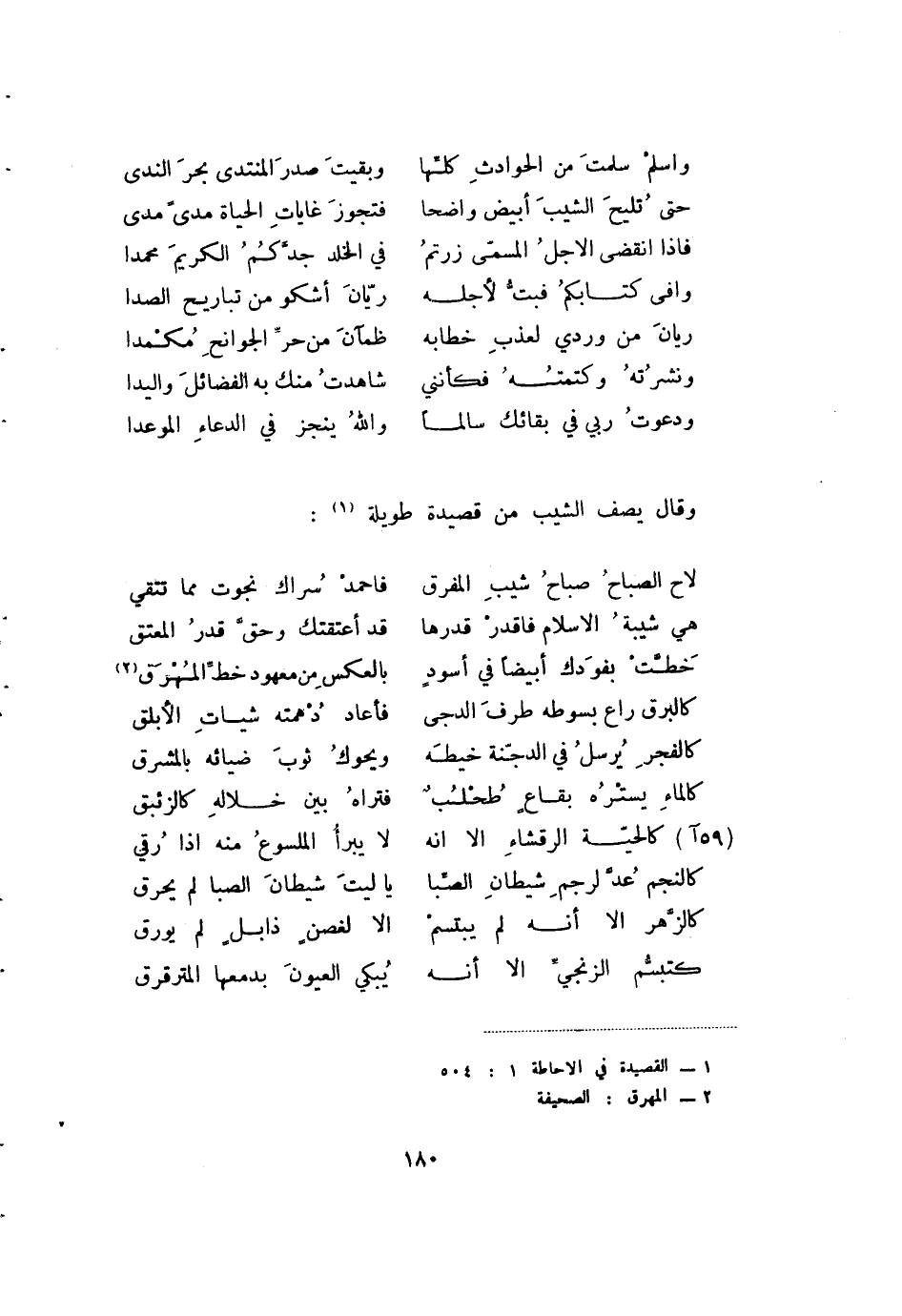 ودعوت ربي في بقائك سالما ... والله ينجز في الدعاء الموعدا وقال يصف الشيب من قصيدة طويلة (1) :