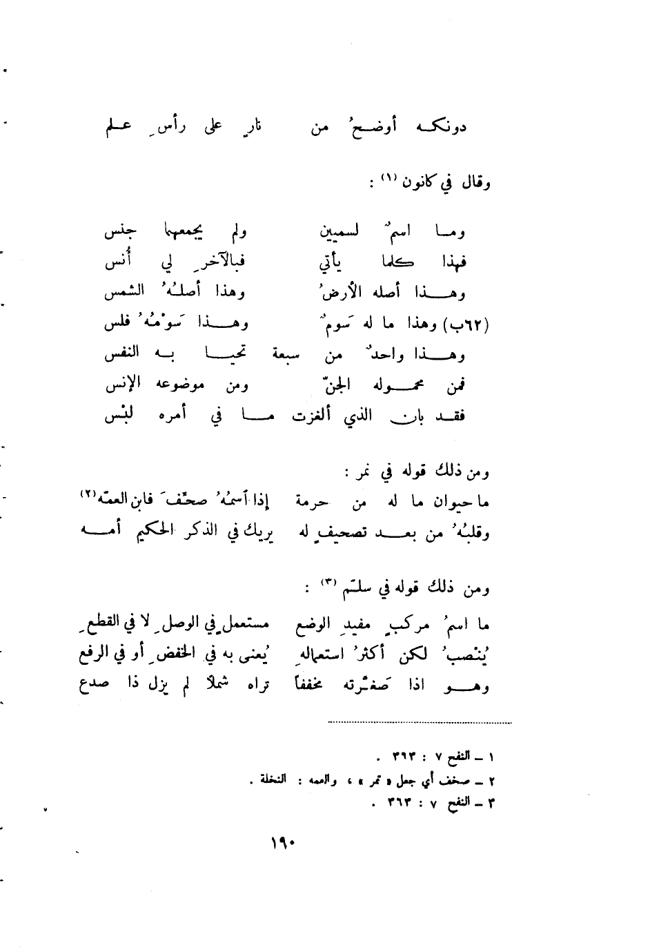 فمن محموله الجن ... ومن موضوعه الأنس فقد بان الذي ألغزت ما في أمره لبس ... ومن ذلك قوله في نمر: