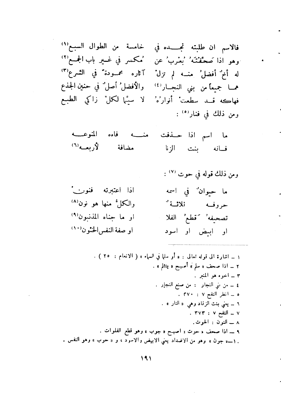 فانه بنت الزنا ... (6) مضافة لأربعه ومن ذلك قوله في الحوت (7) :