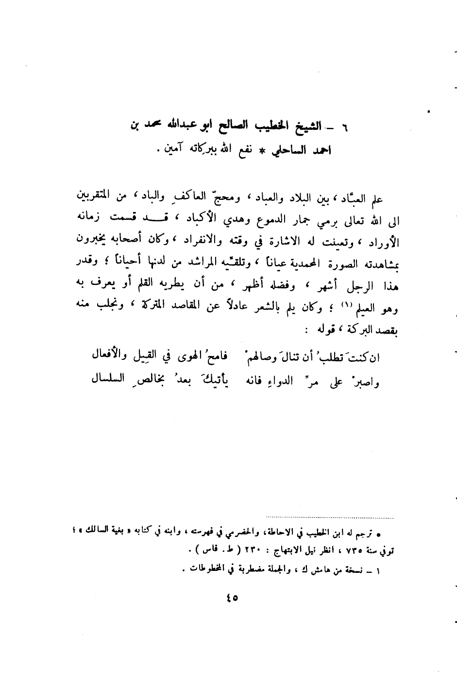 6 - الشيخ الخطيب الصالح أبو عبد الله محمد بن احمد الساحلي (1) نفع الله ببركاته آمين.