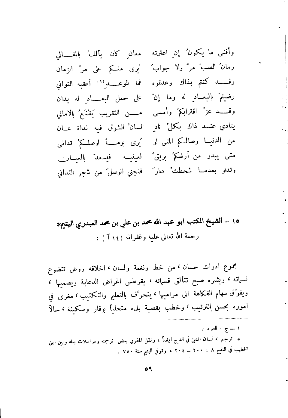 وتدنو بعدما شحطت ديار ... فنجني الوصل من شجر التداني 15 - الشيخ المكتب أبو عبد الله محمد بن علي بن محمد العبدري اليتيم (2)
