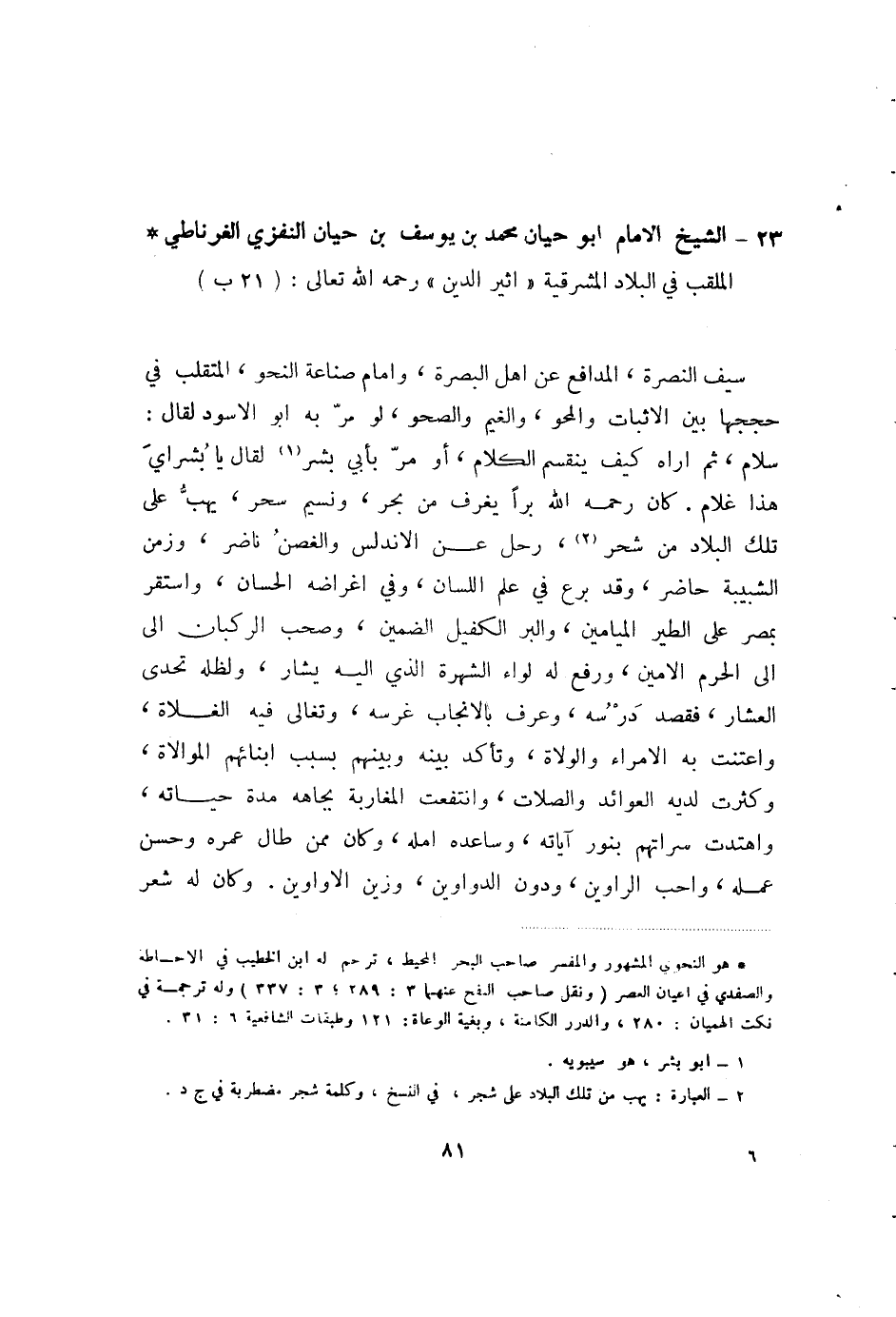 23 - الشيخ الإمام أبو حيان محمد بن يوسف بن حيان النفزي الغرناطي (1)