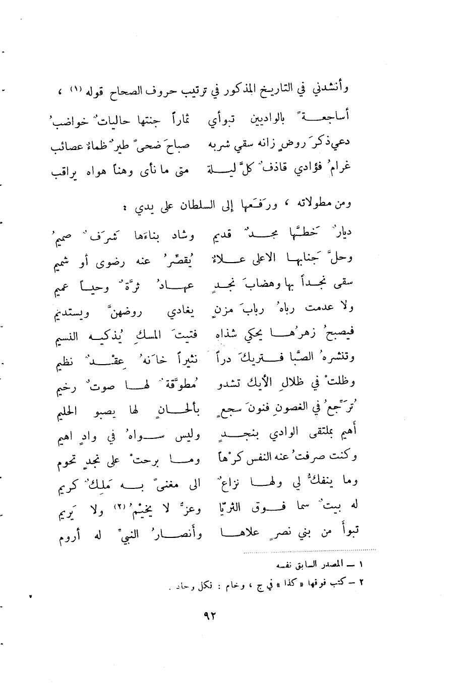 غرام فؤادي قاذف كل ليلة ... متى ما نأى وهنا هواه يراقب ومن مطولاته، ورفعها إلى السلطان على يدي: