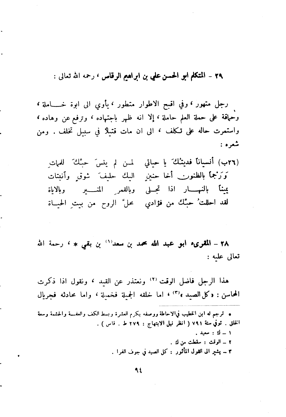 لقد أحللت حبك من فؤادي ... محل الروح من بيت الحياة 28 - المقرئ أبو عبد الله محمد بن سعد (1) بن بقي (2) رحمة الله تعالى عليه: