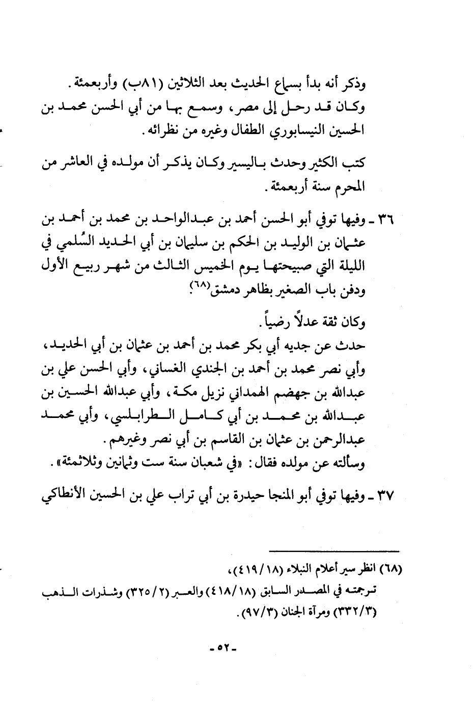 36 - وفيهَا توفّي أَبُو الْحسن أَحْمد بن عبد الْوَاحِد بن مُحَمَّد بن أَحْمد بن عُثْمَان بن الْوَلِيد بن الحكم بن سُلَيْمَان بن أبي الْحَدِيد السّلمِيّ فِي اللَّيْلَة الَّتِي صبيحتها يَوْم الْخَمِيس الثَّالِث من شهر ربيع الأول وَدفن بَاب الصَّغِير بِظَاهِر دمشق