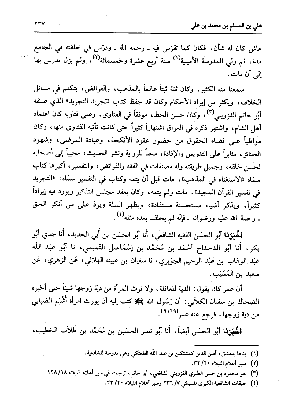 (4) طبقات الشافعية الكبرى للسبكي 7 / 236 وسير أعلام النبلاء 20 / 33