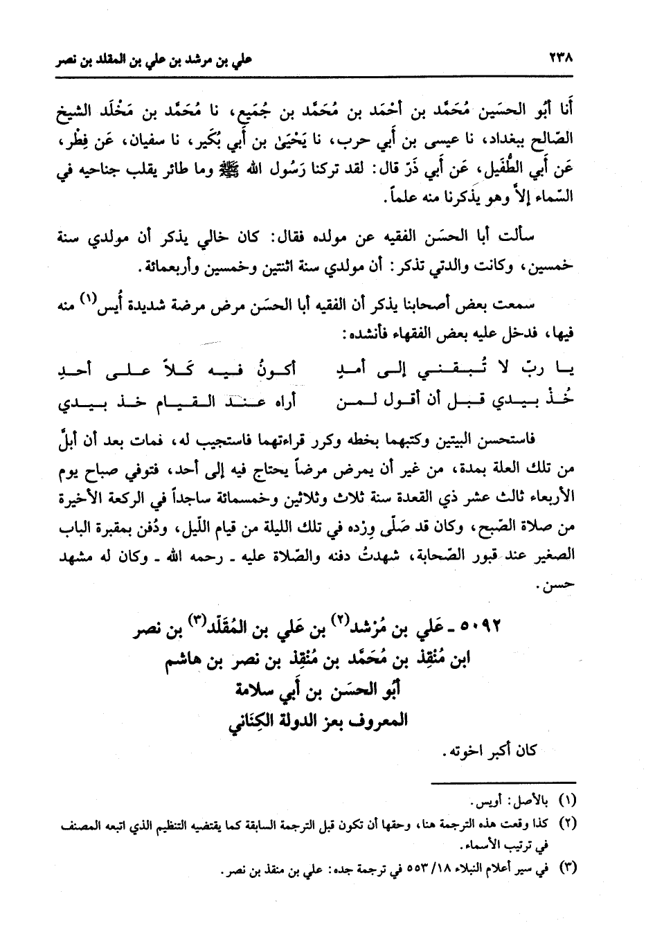 (3) في سير أعلام النبلاء 18 / 553 في ترجمة جده: علي بن منقذ بن نصر