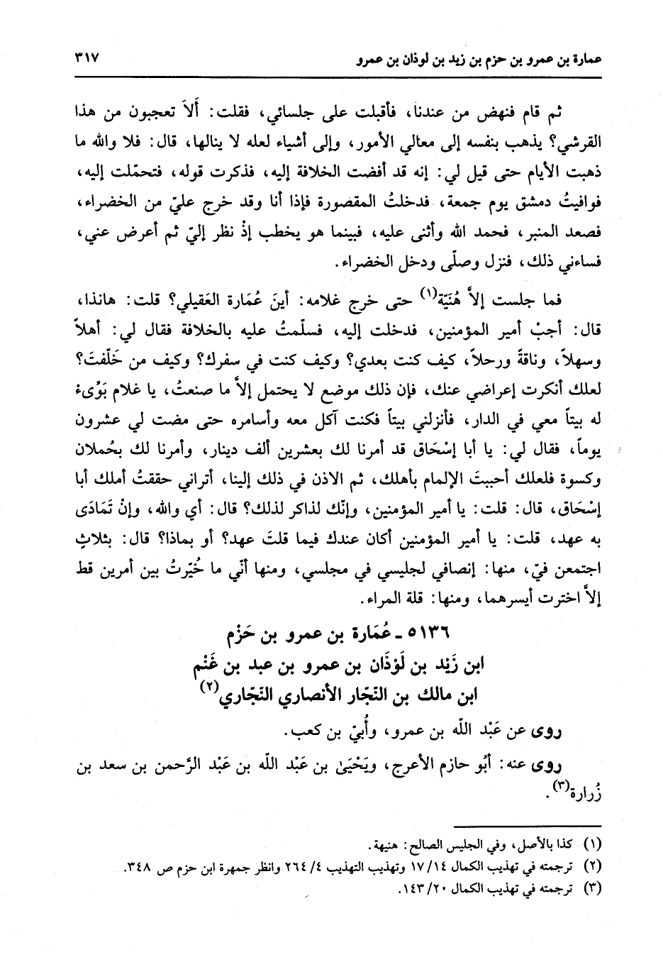 (2) ترجمته في تهذيب الكمال 14 / 17 وتهذيب التهذيب 4 / 264 وانظر جمهرة ابن حزم ص 348
