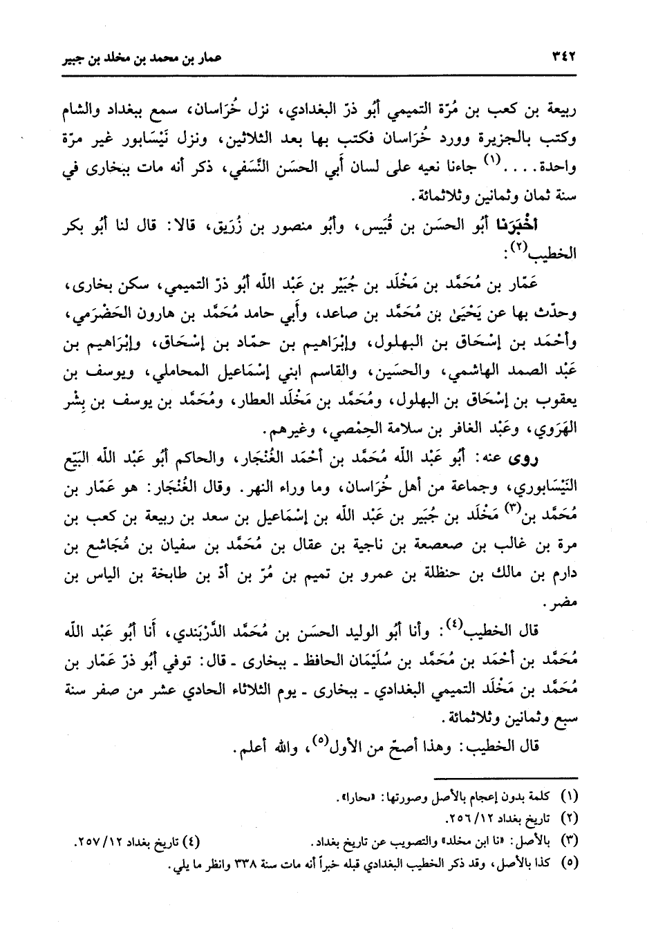 (5) كذا بالأص ل وقد ذكر الخطيب البغدادي قبله خبرا أنه مات سنة 338 وانظر ما يلي