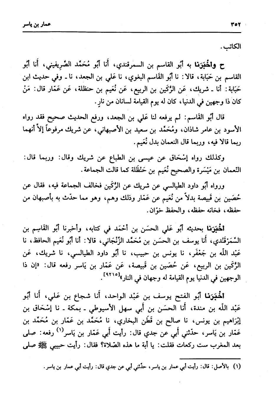 (1) بالأصل: قال: رأيت أبي عمار بن ياسر حدثني أبي عن حدي قال: رأيت أبي عمار بن ياسر