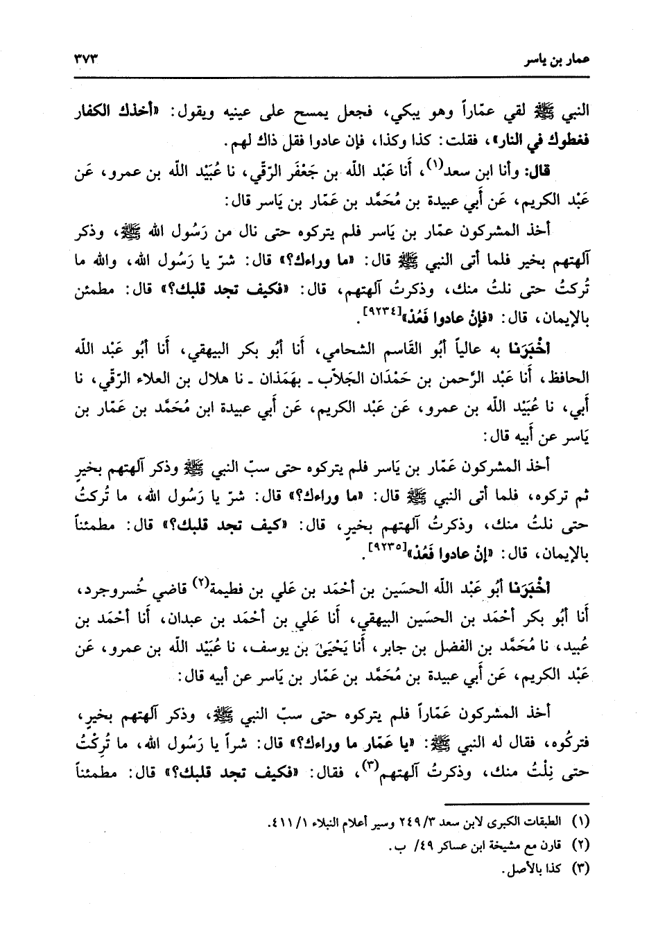 (1) الطبقات الكبرى لابن سعد 3 / 249 وسير أعلام النبلاء 1 / 411