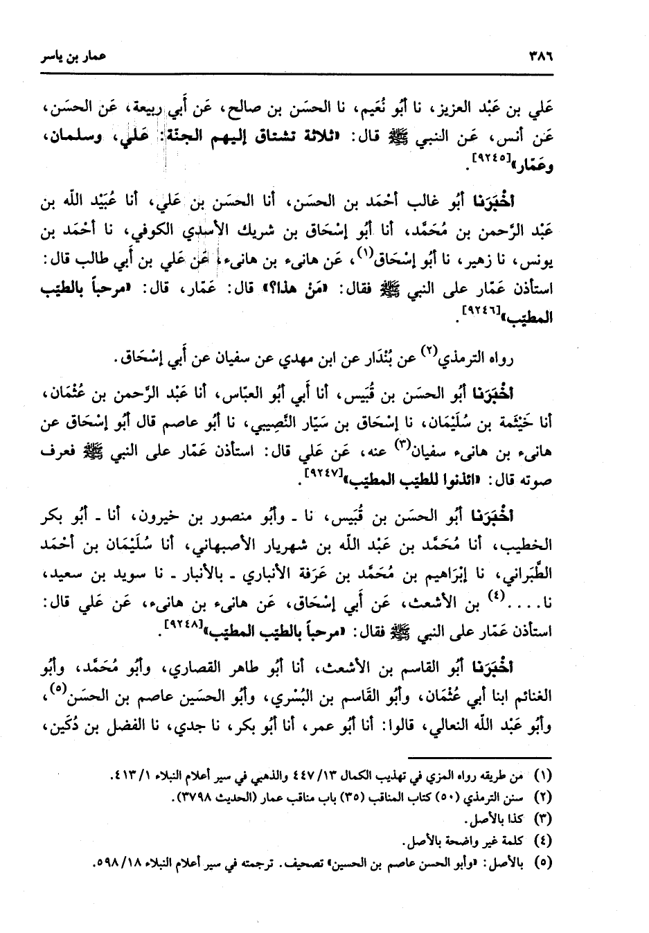 (2) سنن الترمذي (50) كتاب المناقب (35) باب مناقب عمار (الحديث 3789)
