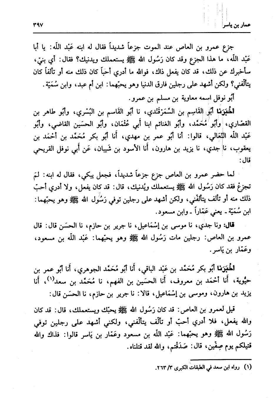 (1) رواه ابن سعد في الطبقات الكبرى 3 / 263