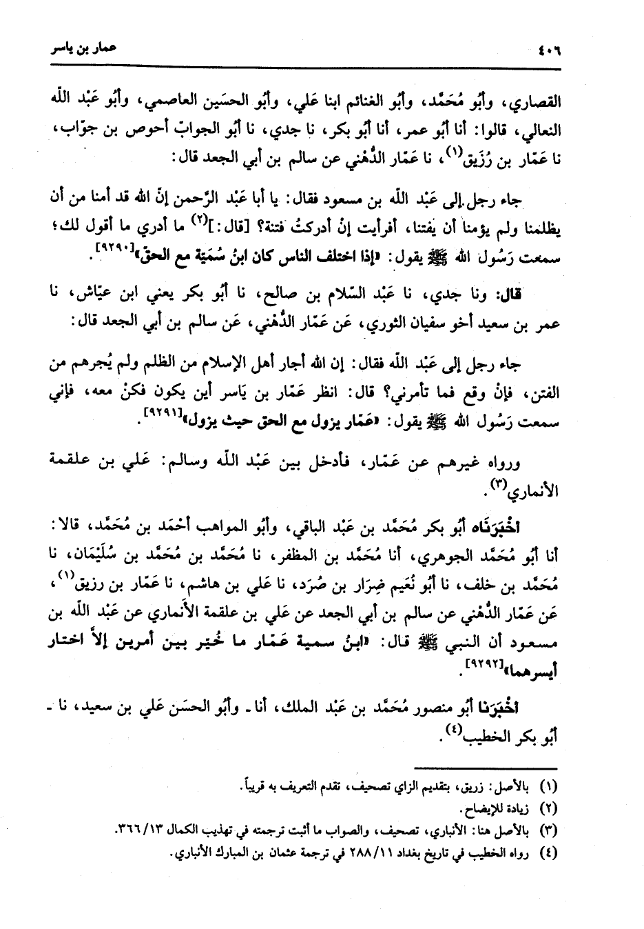 (4) رواه الخطيب في تاريخ بغداد 11 / 288 في ترجمة عثمان بن المبارك الأنباري
