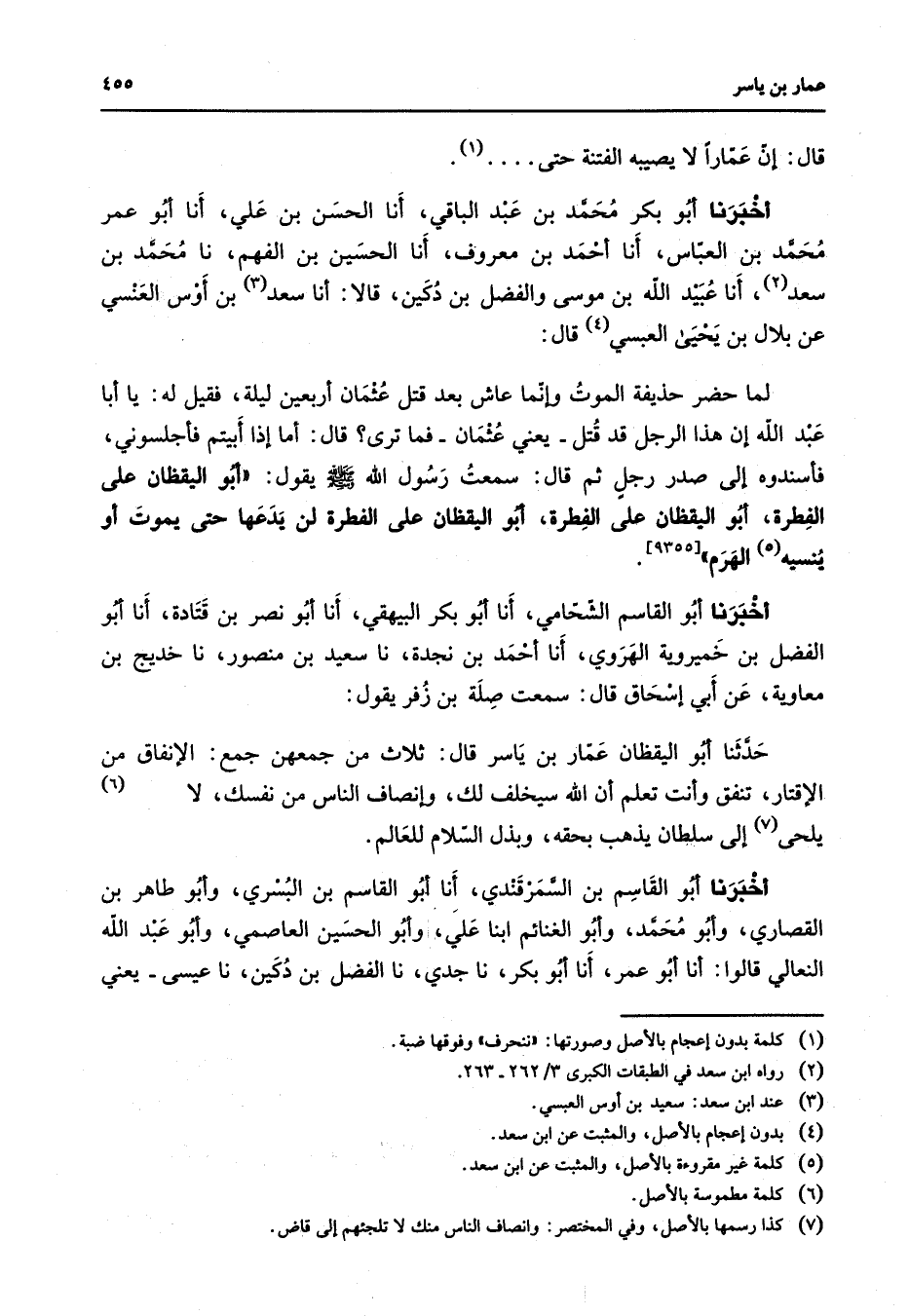 [9355] أخبرنا أبو القاسم الشحامي أنا أبو بكر البيهقي أنا أبو نصر بن قتادة أنا أبو الفضل بن خميروية الهروي أنا أحمد بن نجدة نا سعيد بن منصور نا خديج بن معاوية عن أبي إسحاق قال سمعت صلة بن زفر يقول حدثنا أبو اليقظان عمار بن ياسر قال ثلاث من جمعهن جمع الإنفاق من الإقتار تنفق وأنت تعلم أن الله سيخلف لك وإنصاف الناس من نفسك لا (6) يلحى (7) إلى سلطان يذهب بحقه وبذل السلام للعالم أخبرنا أبو القاسم بن السمرقندي أنا أبو القاسم بن البسري وأبو طاهر بن القصاري وأبو محمد وأبو الغنائم ابنا علي وأبو الحسين العاصمي وأبو عبد الله النعالي قالوا أنا أبو عمر أنا أبو بكر نا جدي نا الفضل بن دكين نا عيسى يعني