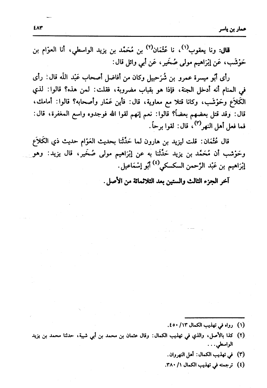 (4) ترجمته في تهذيب الكمال 1 / 380