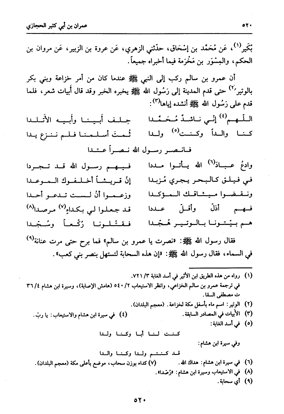 في ترجمة عمرو بن سالم الخزاعي وانظر الاستيعاب 2 / 540 (هامش الإصابة) وسيرة ابن هشام 4 / 36 ت مصطفى السقا