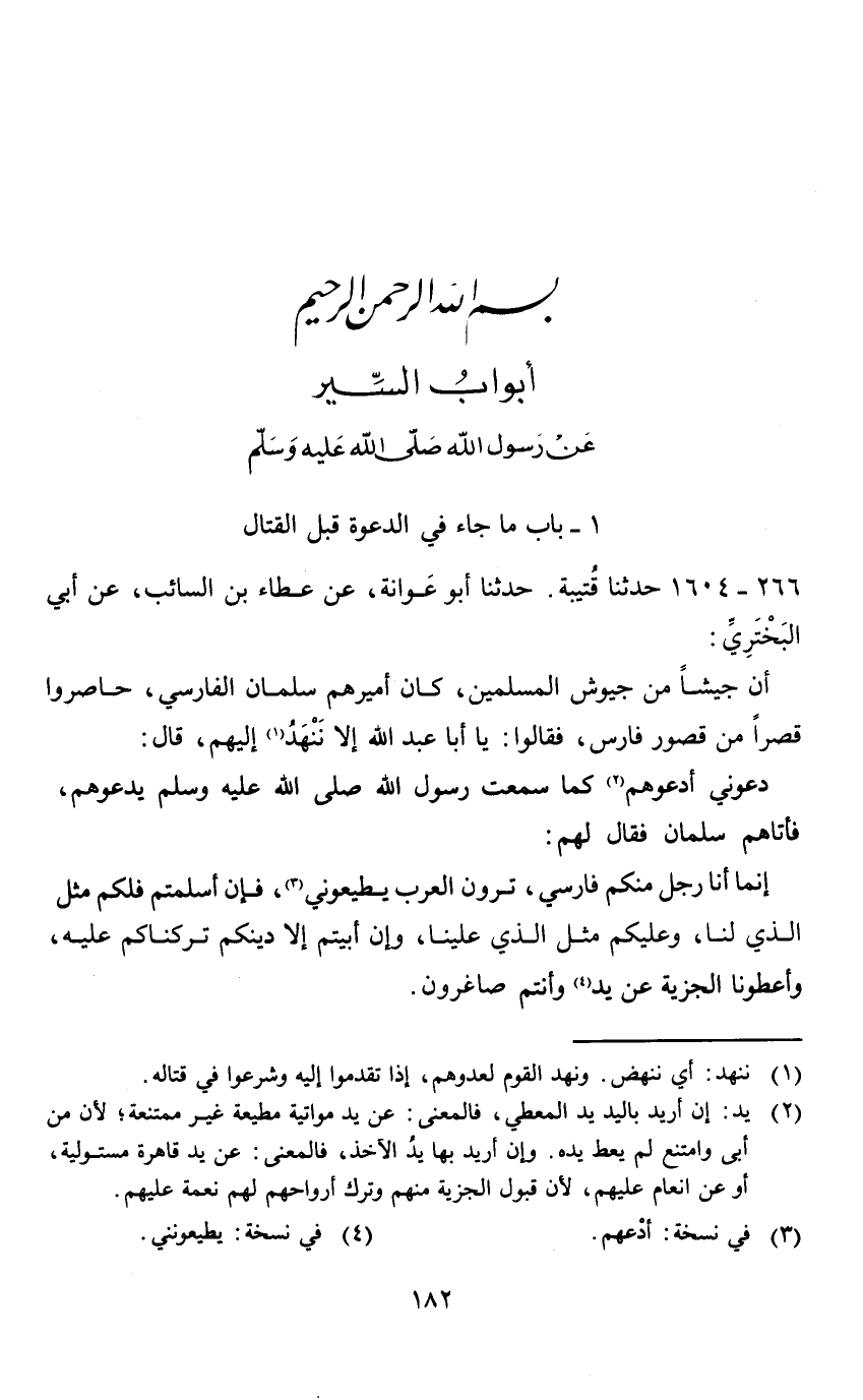 1 - باب ما جاء في الدعوة قبل القتال 266 - 1604 حدثنا قتيبة.