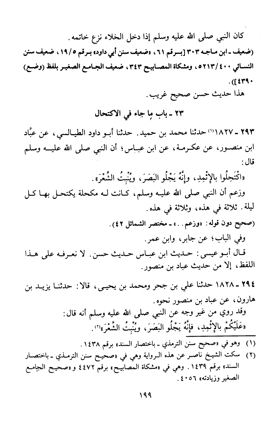 23 - باب ما جاء في الاكتحال 293 - 1827 (1) حدثنا محمد بن حميد.