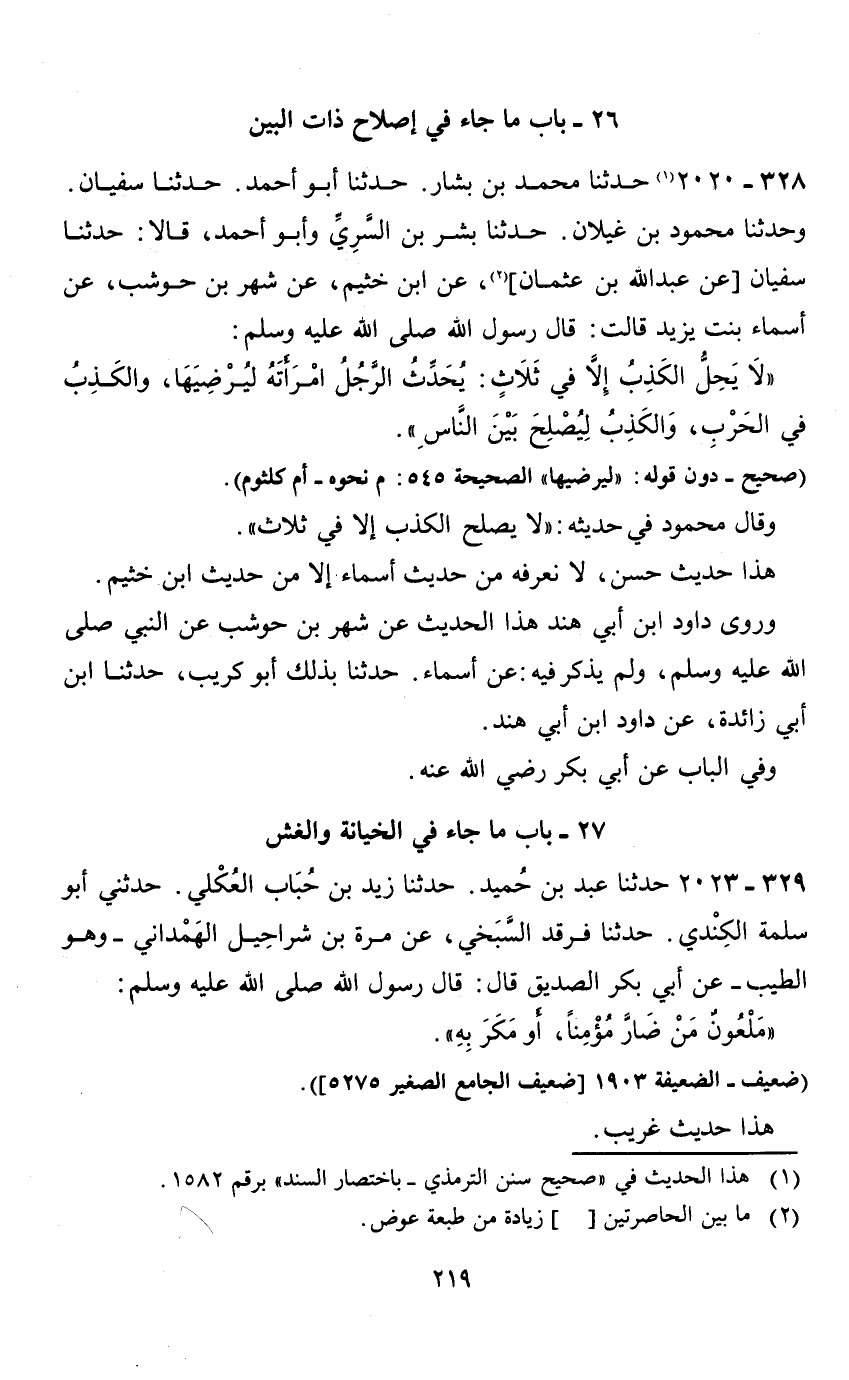 26 - باب ما جاء في إصلاح ذات البين 328 - 2020 (1) حدثنا محمد بن بشار.
