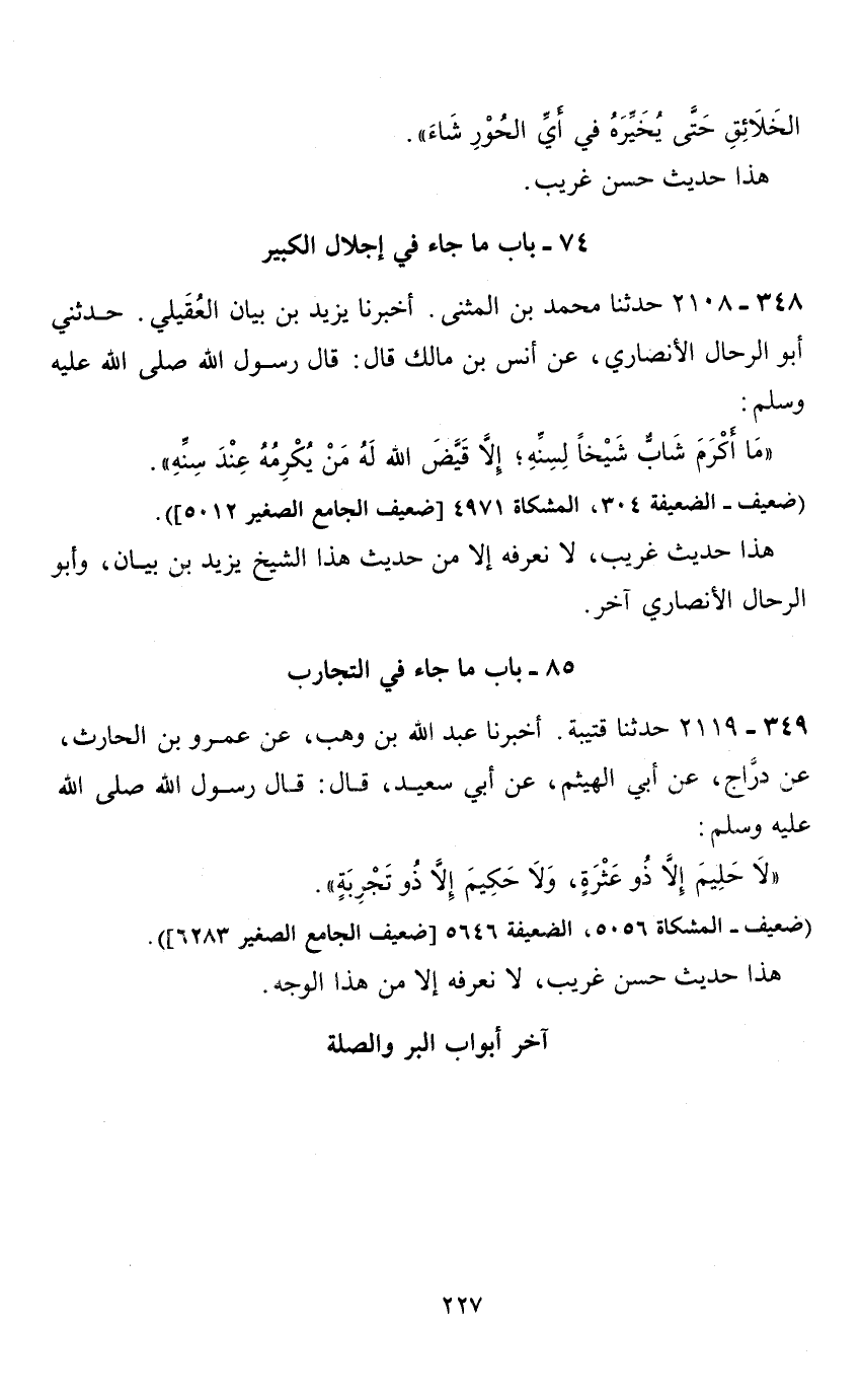 74 - باب ما جاء في إجلال الكبير 348 - 2108 حدثنا محمد بن المثنى.