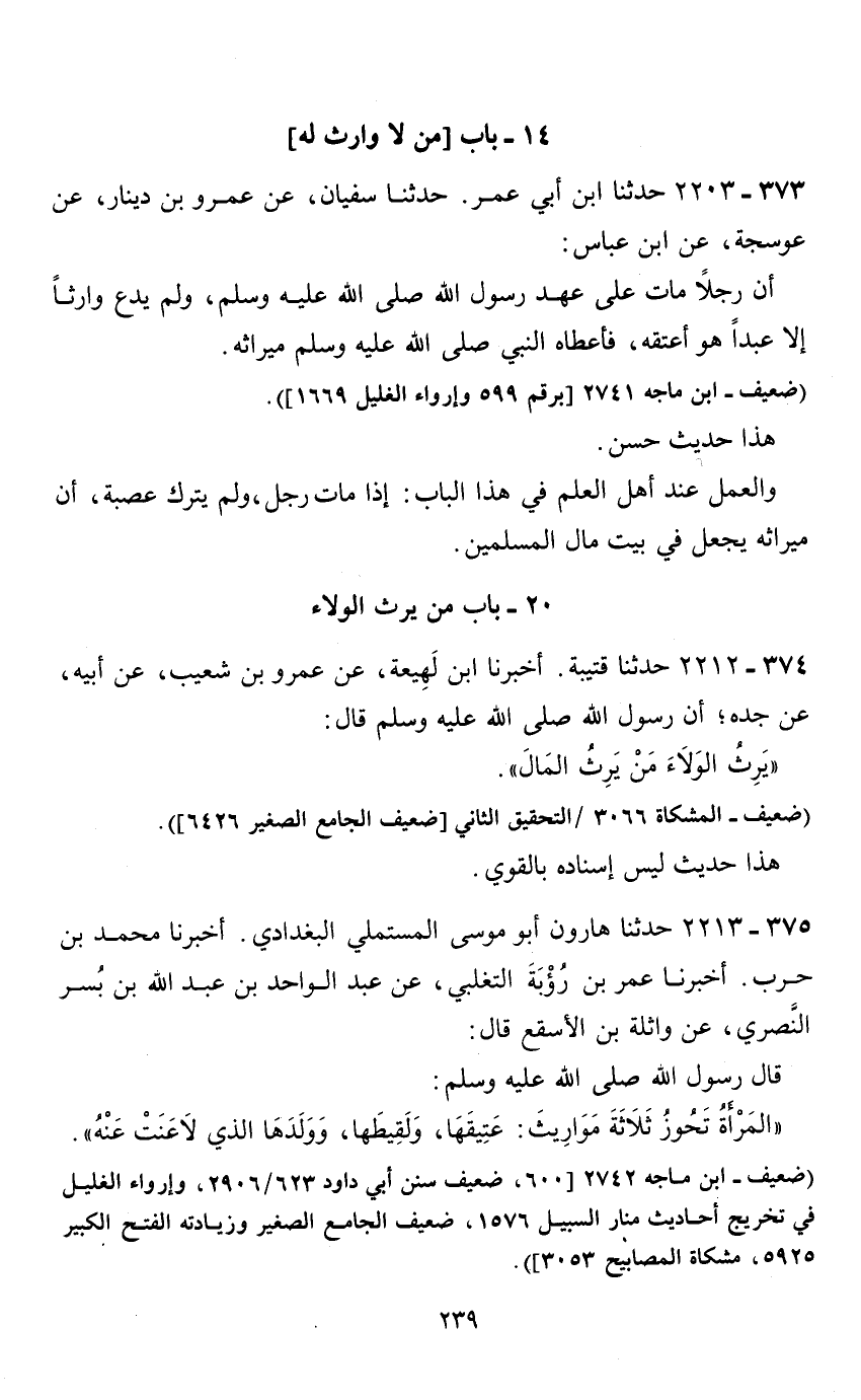 14 - باب (من لا وارث له) 373 - 2203 حدثنا ابن أبي عمر.