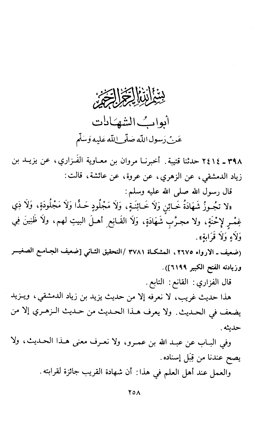 بسم الله الرحمن الرحيم أبواب الشهادات عن رسول الله صلى الله عليه وسلم 398 - 2414 حدثنا قتيبة.