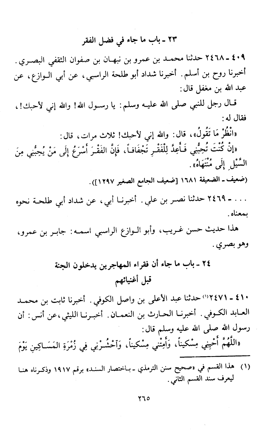 240 - باب ما جاء أن فقراء المهاجرين يدخلون الجنة قبل أغنيائهم 410 - 2471 (1) حدثنا عبد الاعلى بن واصل الكوفي.