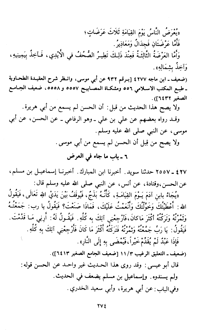 6 - باب ما جاء في العرض 427 - 2557 حدثنا سويد.