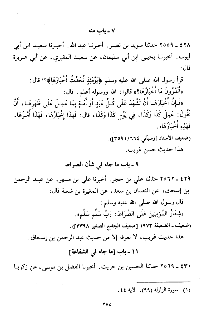 9 - باب ما جاء في شأن الصراط 429 - 2562 حدثنا علي بن حجر.