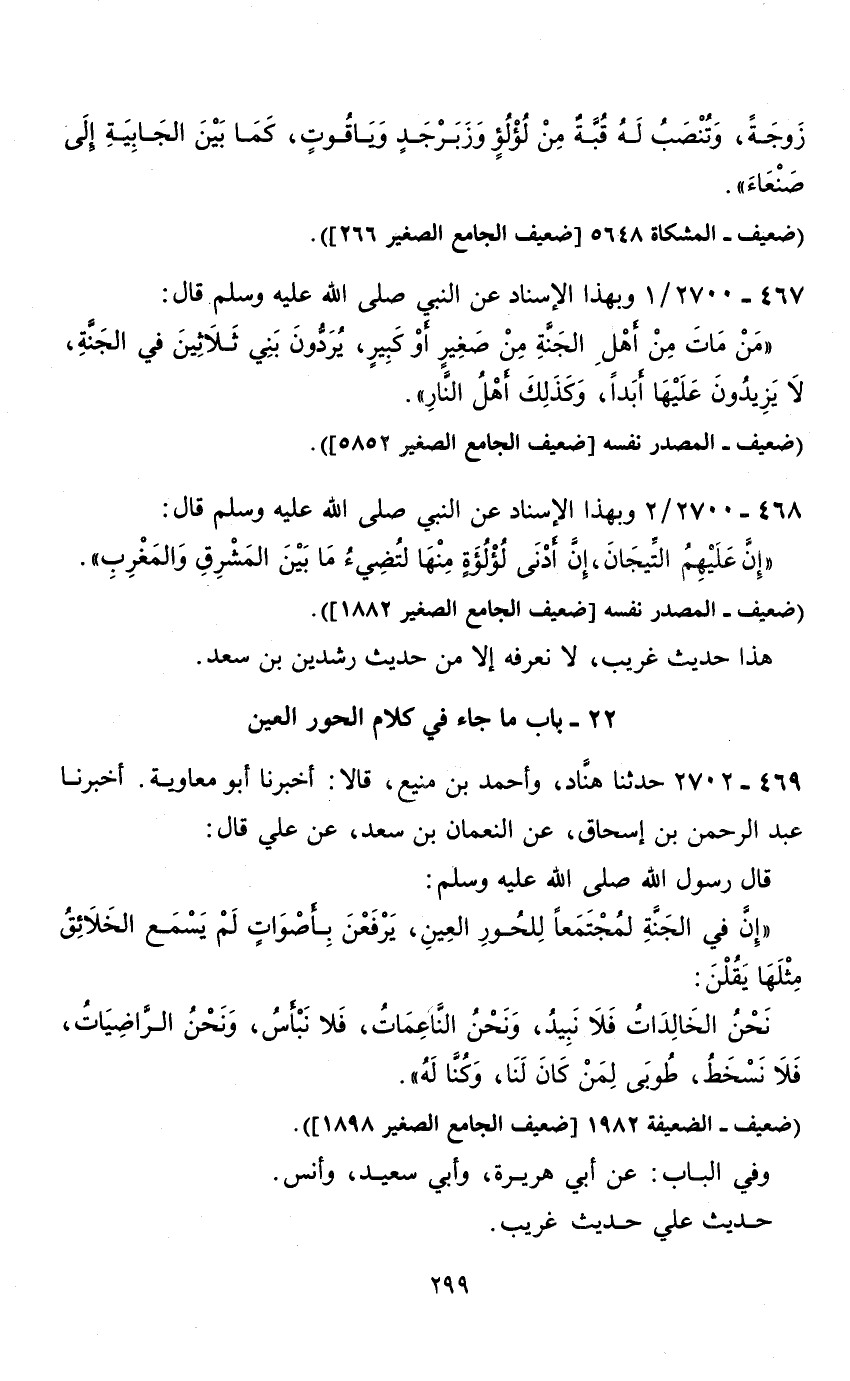 22 - باب ما جاء في كلام الحور العين 469 - 2702 حدثنا هناد، وأحمد بن منيع، قالا: أخبرنا أبو معاوية.