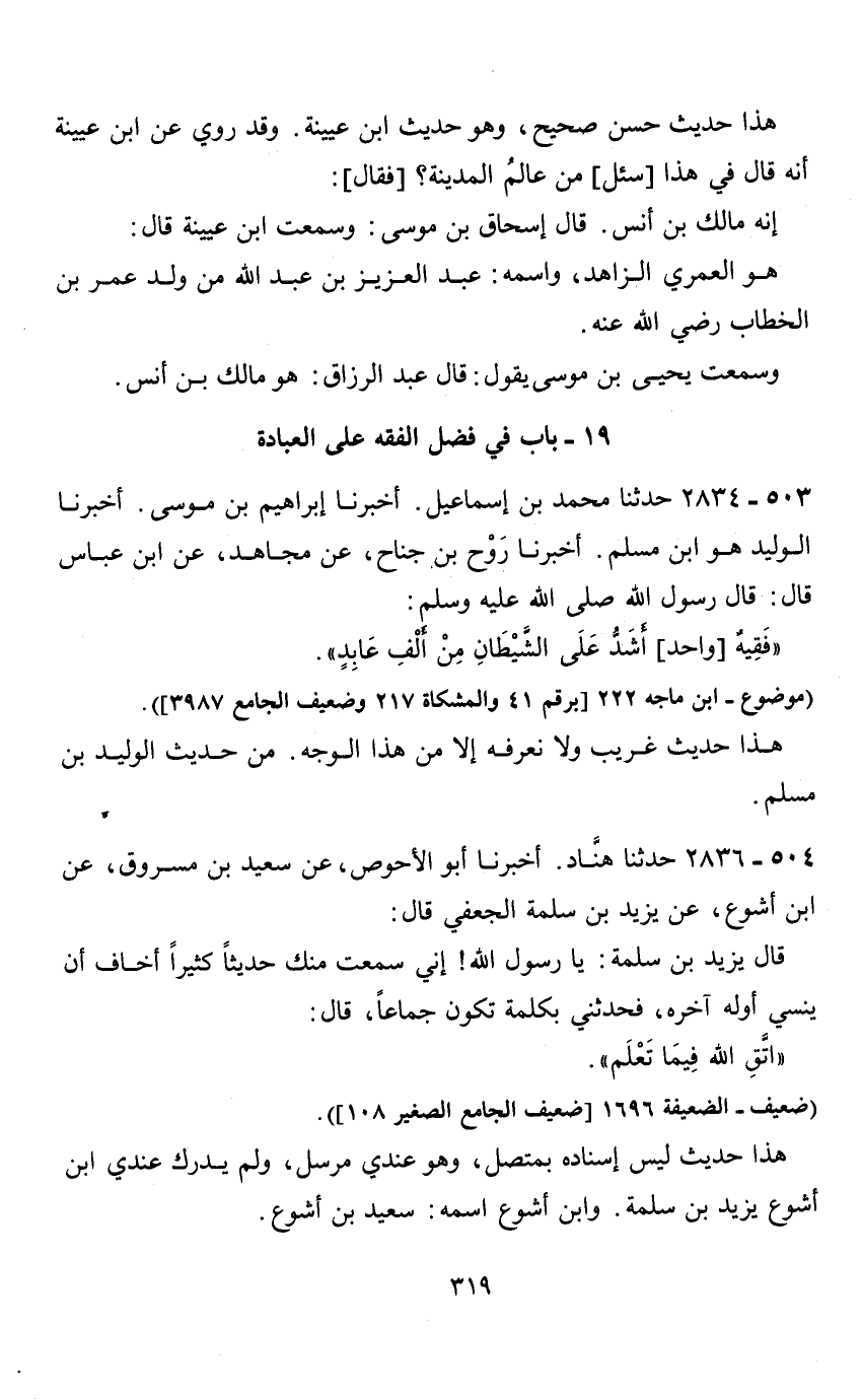 19 - باب في فضل الفقه على العبادة 503 - 2834 حدثنا محمد بن إسماعيل.