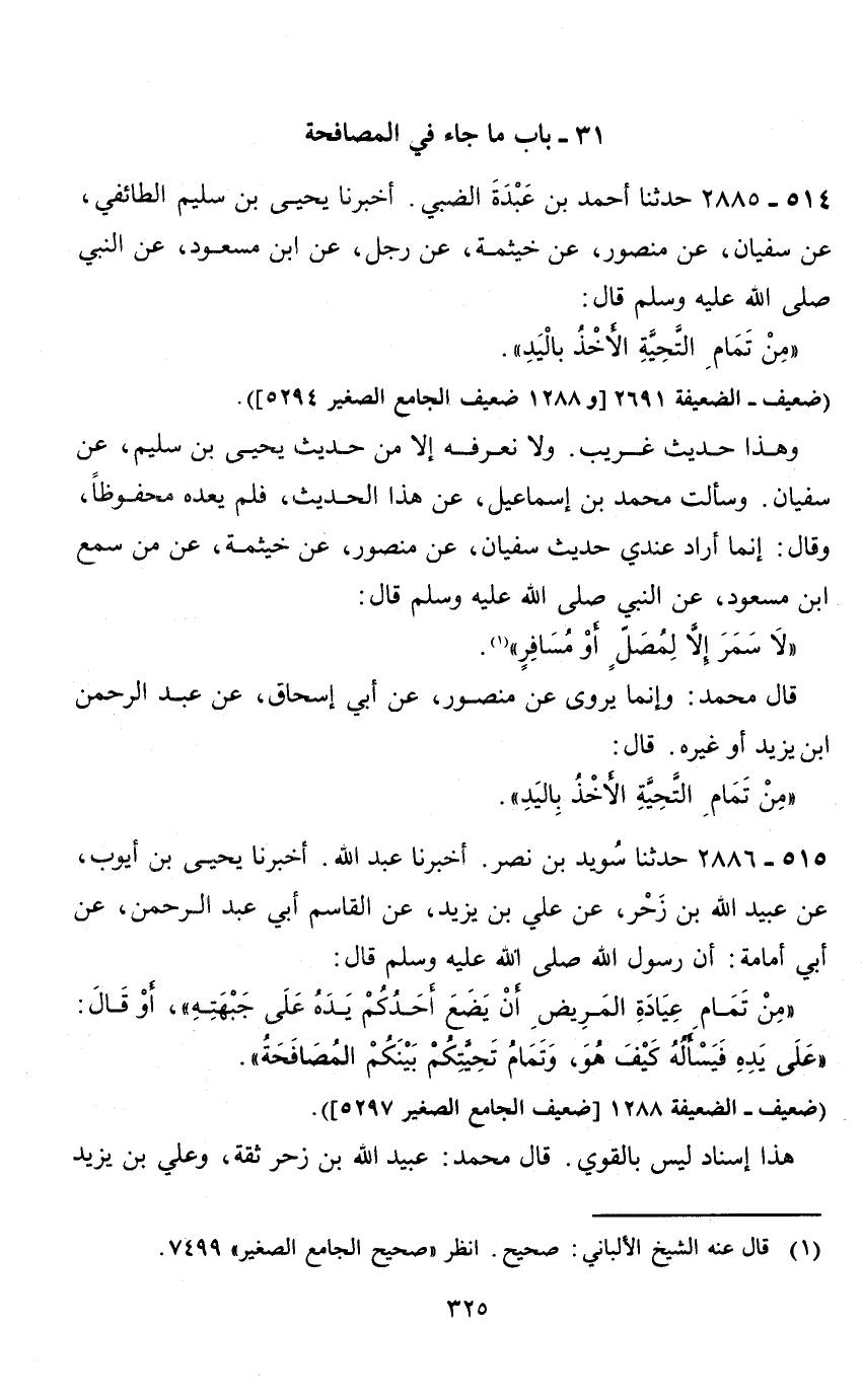 31 - باب ما جاء في المصافحة 514 - 2885 حدثنا أحمد بن عبدة الضبي.