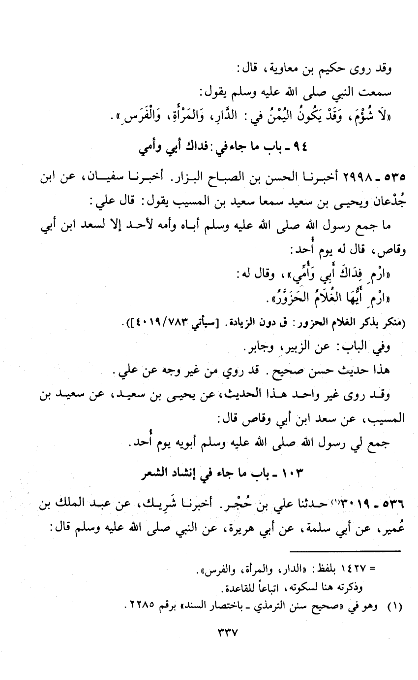 94 - باب ما جاء في: فداك أبي وأمي 535 - 2998 أخبرنا الحسن بن الصباح البزار.
