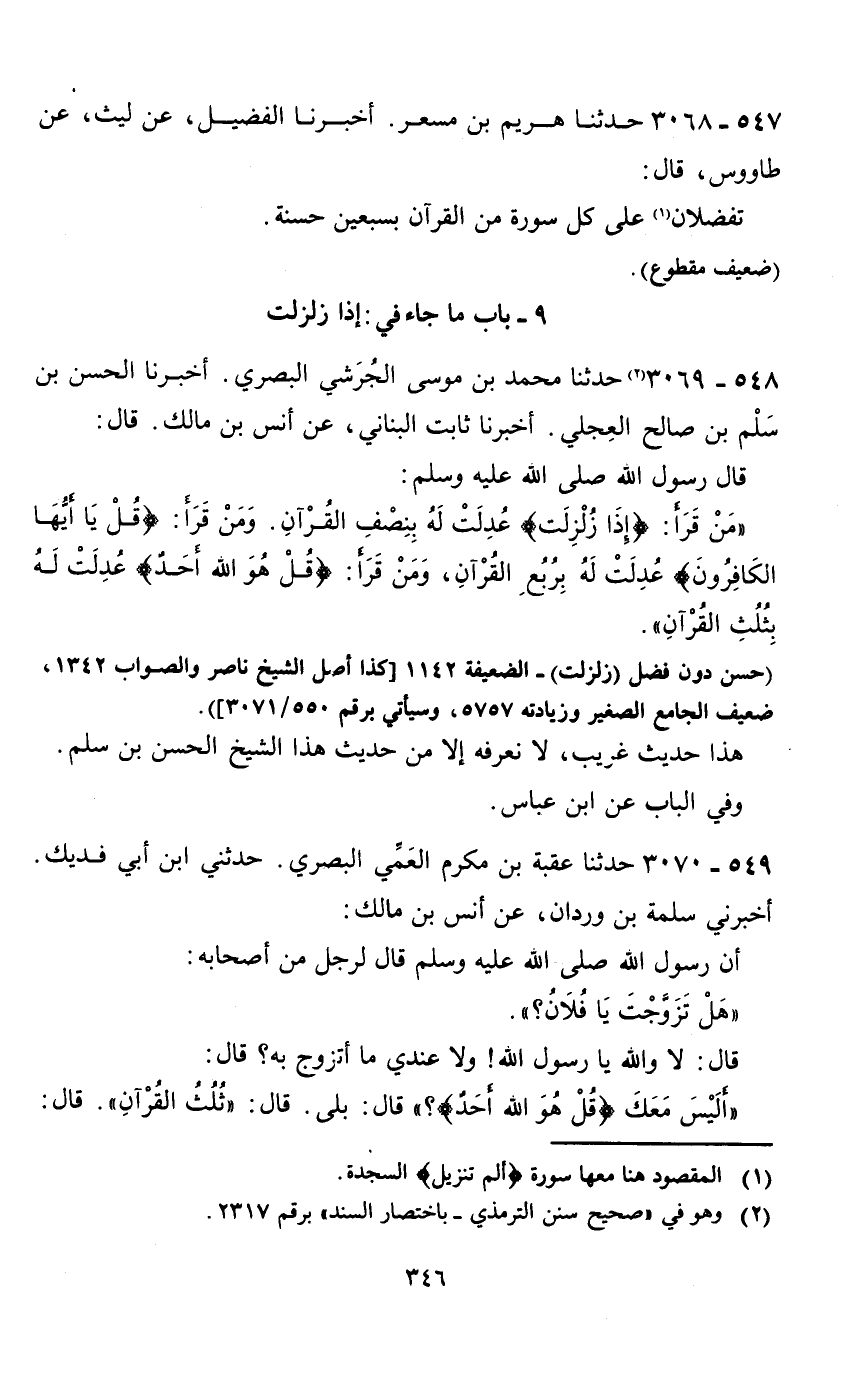 9 - باب ما جاء في: إذا زلزلت 548 - 3069 (2) حدثنا محمد بن موسى الجرشي البصري.