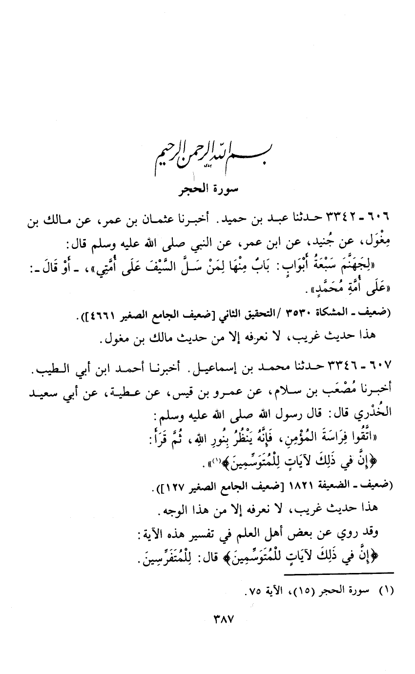 بسم الله الرحمن الرحيم سورة الحجر 606 - 3342 حدثنا عبد بن حميد.