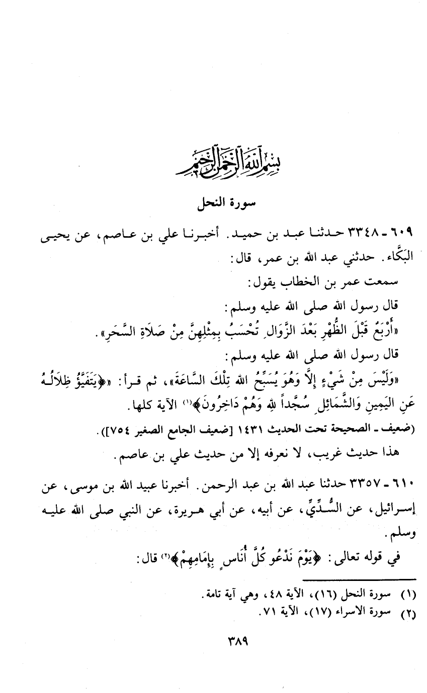 بسم الله الرحمن الرحيم سورة النحل 609 - 3348 حدثنا عبد بن حميد.