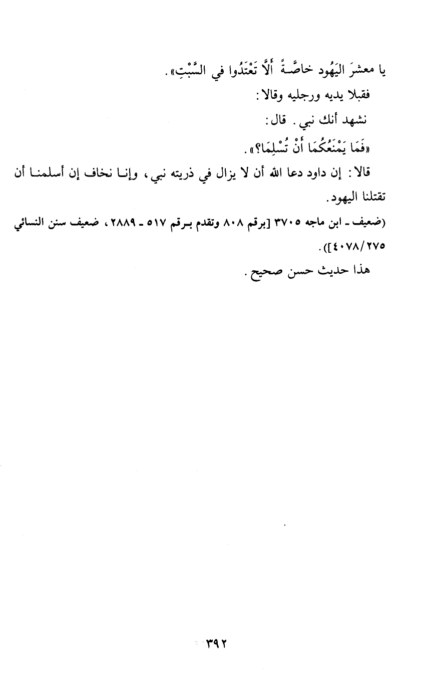 يا معشر اليهود خاصة ألا تعتدوا في السبت ".