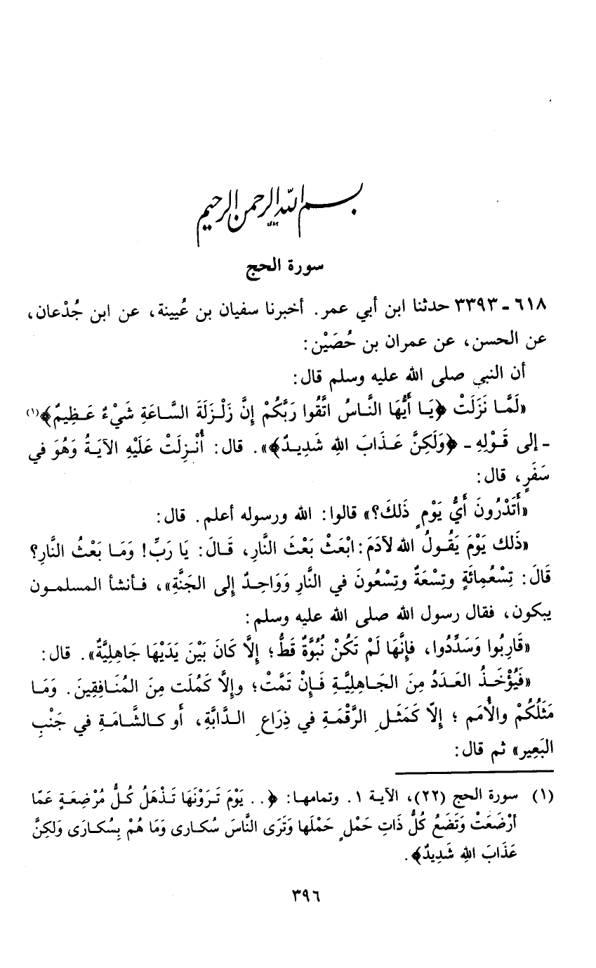 بسم الله الرحمن الرحيم سورة الحج 618 - 3393 حدثنا ابن أبي عمر.