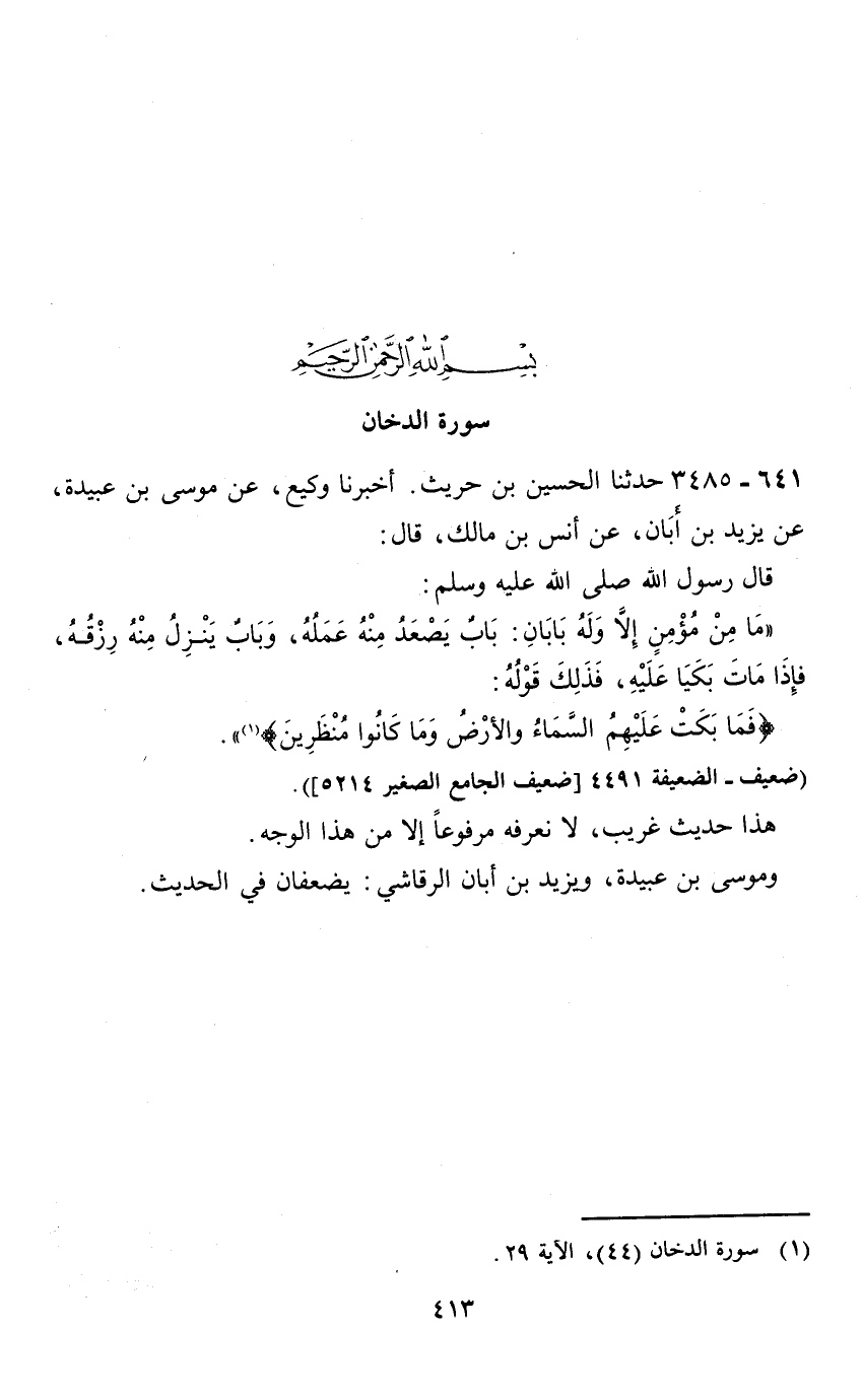 بسم الله الرحمن الرحيم سورة الدخان 641 - 3485 حدثنا الحسين بن حريث.