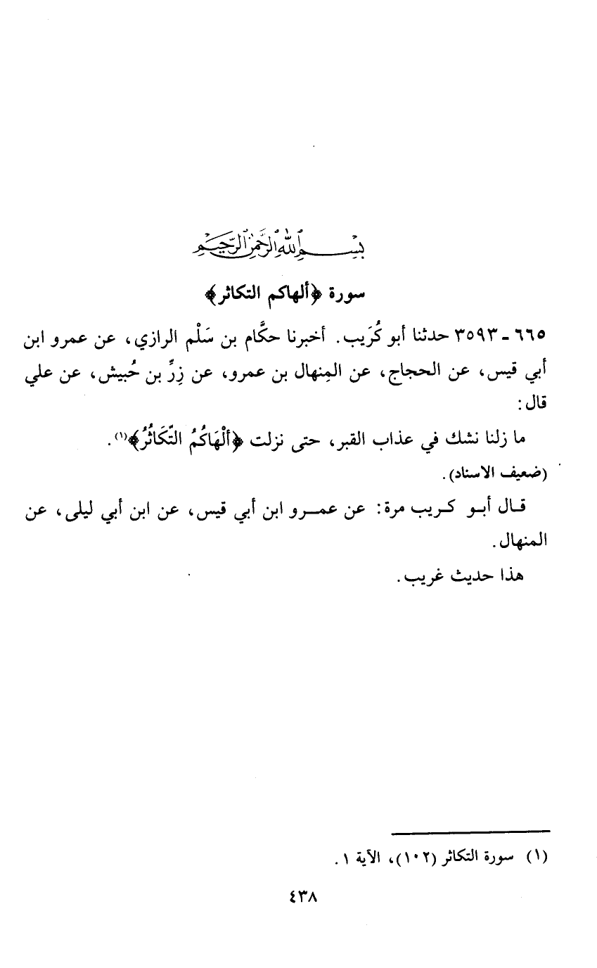 بسم الله الرحمن الرحيم سورة (ألهاكم التكاثر) 665 - 3593 حدثنا أبو كريب.