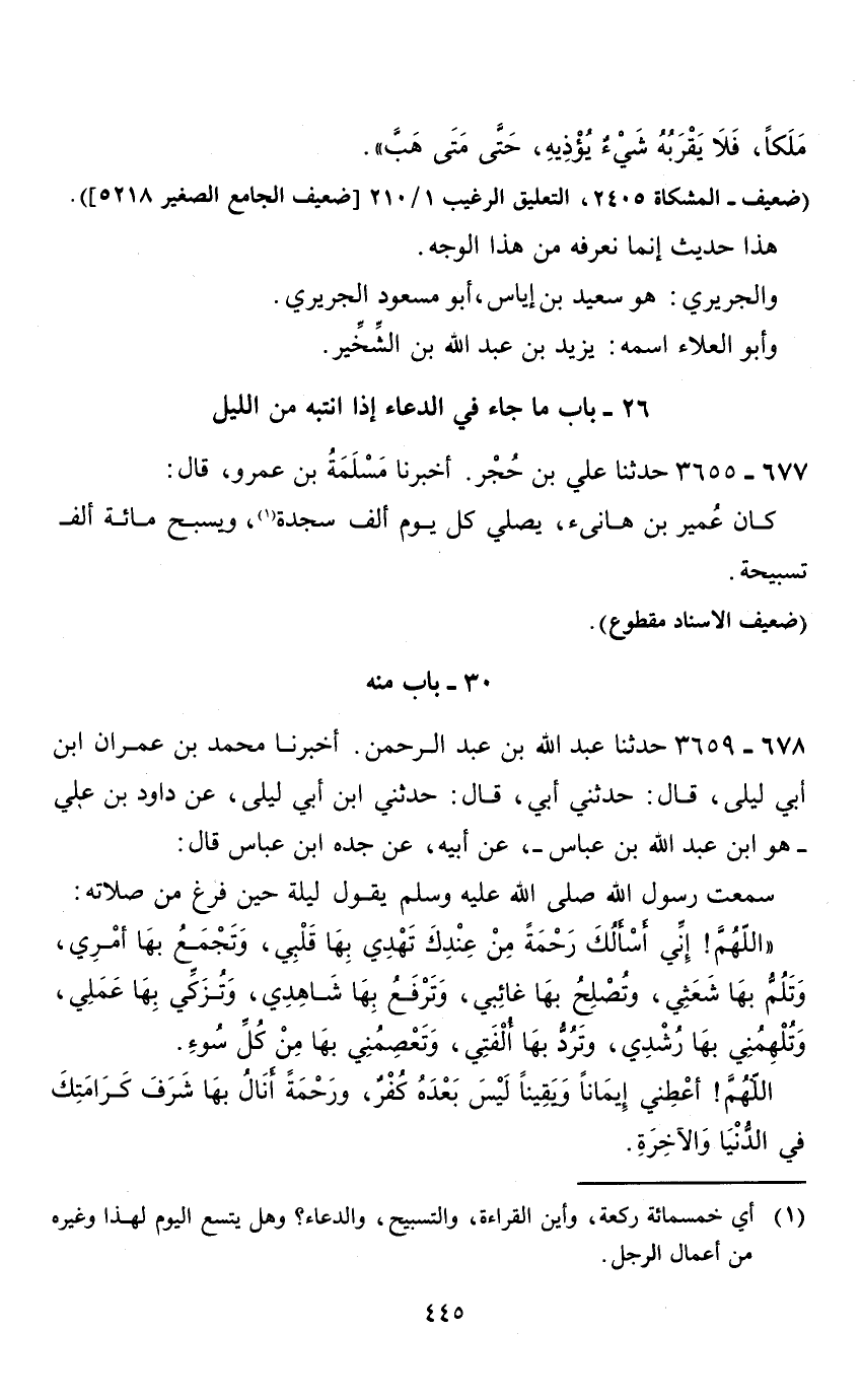 26 - باب ما جاء في الدعاء إذا انتبه من الليل 677 - 3655 حدثنا علي بن حجر.