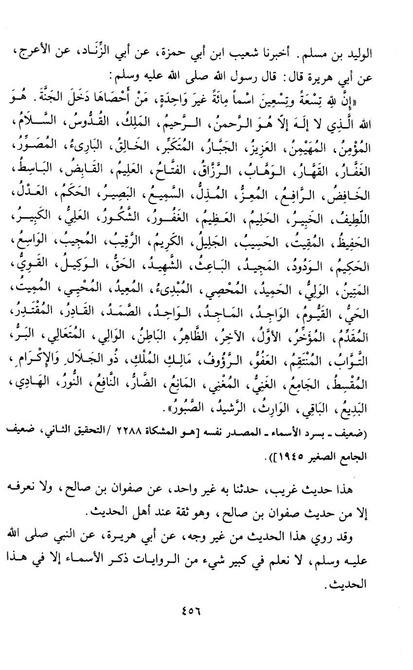 وقد روي هذا الحديث من غير وجه، عن أبي هريرة، عن النبي صلى الله عليه وسلم، لا نعلم في كبير شئ من الروايات ذكر الاسماء إلا في هذا الحديث.