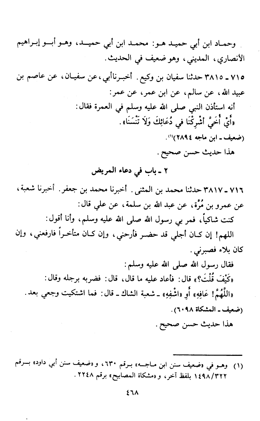 2 - باب في دعاء المريض 716 - 3817 حدثنا محمد بن المثنى.
