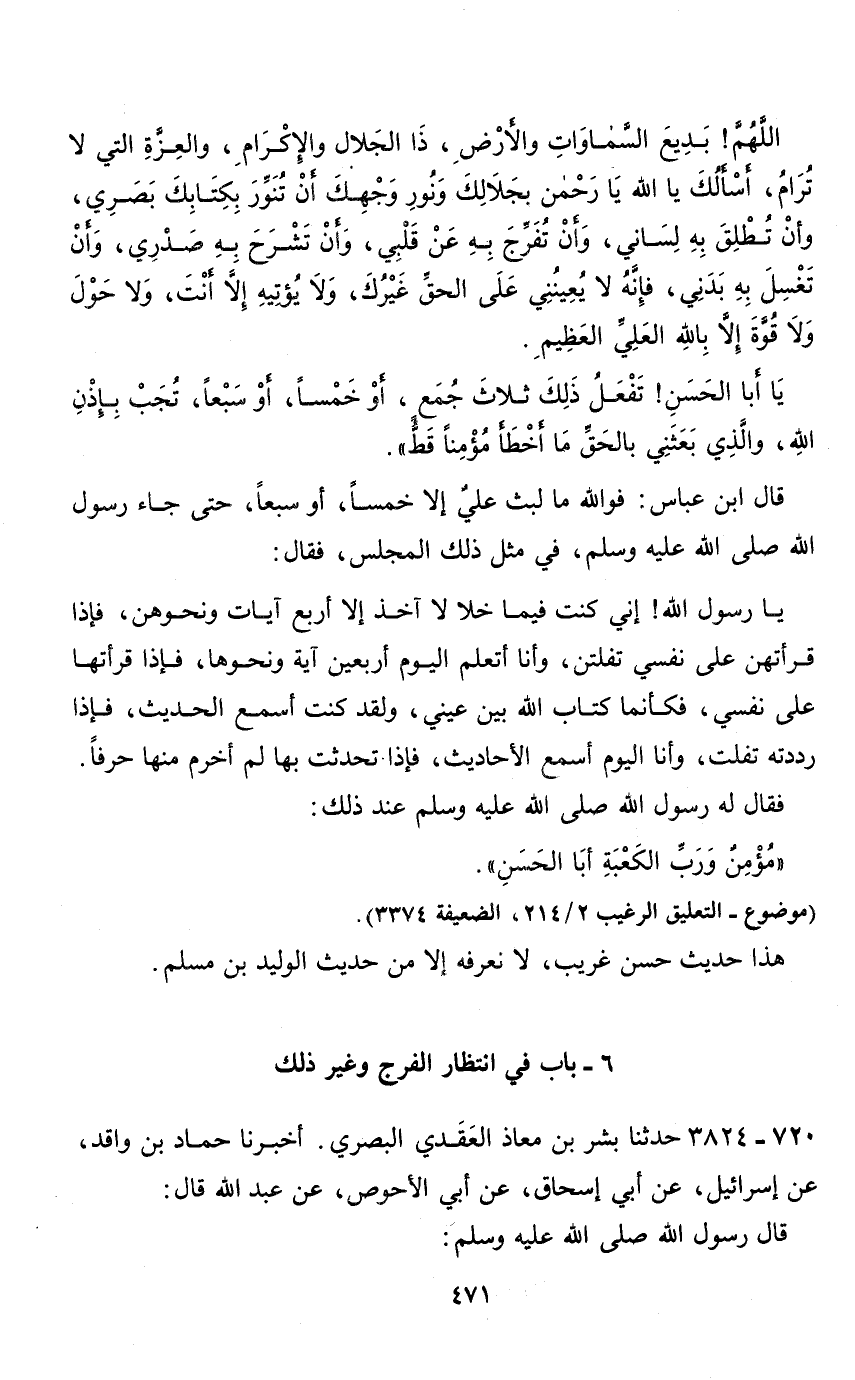 6 - باب في انتظار الفرج وغير ذلك 720 - 3824 حدئنا بشر بن معاذ العقدي البصري.