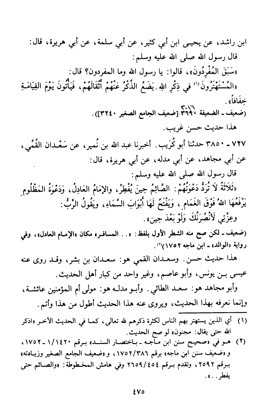 ابن راشد، عن يحيى ابن أبي كثير، عن أبي سلمة، عن أبي هريرة، قال: قال رسول الله صلى الله عليه وسلم: " سبق المفردون "، قالوا: يا رسول الله وما المفردون؟ قال: " المستهترون (1) في ذكر الله.
