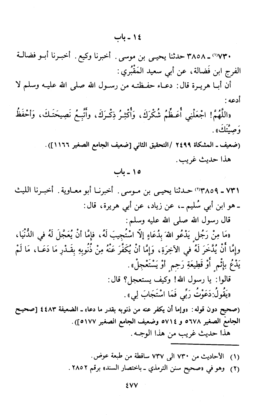 14 - باب 730 (1) - 3858 حدثنا يحيى بن موسى.