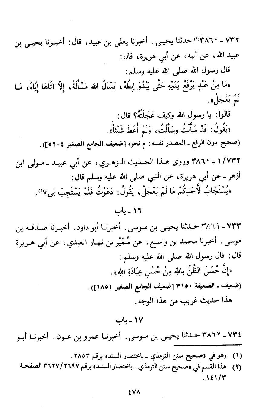 16 - باب 733 - 3861 حدثنا يحيى بن موسى.