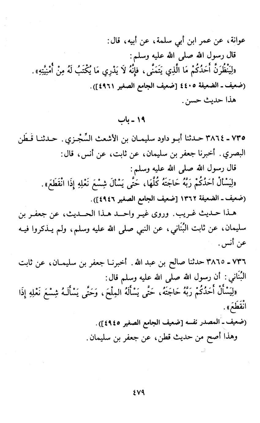19 - باب 735 - 3864 حدثنا أبو داود سليمان بن الاشعث السجزي.